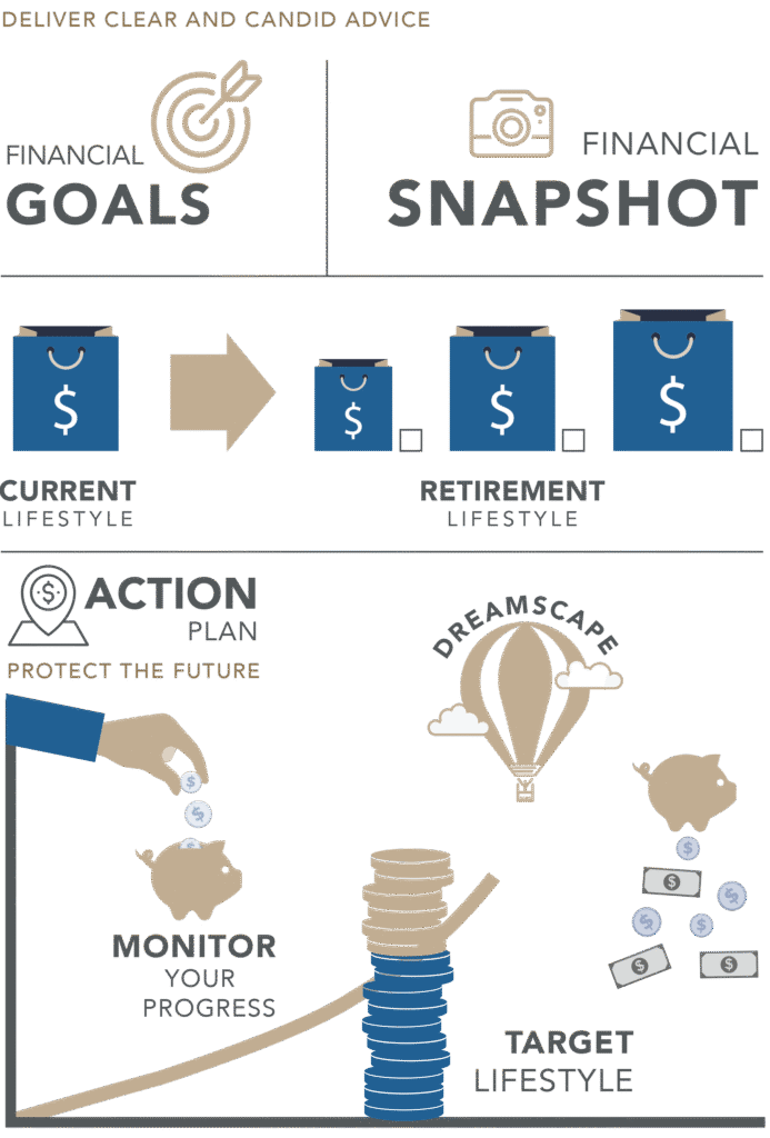 The Hillside Navigator is designed to bring clarity to your financial life. We help you establish your monthly after-tax target retirement lifestyle in today’s dollars, and design a plan to achieve it.